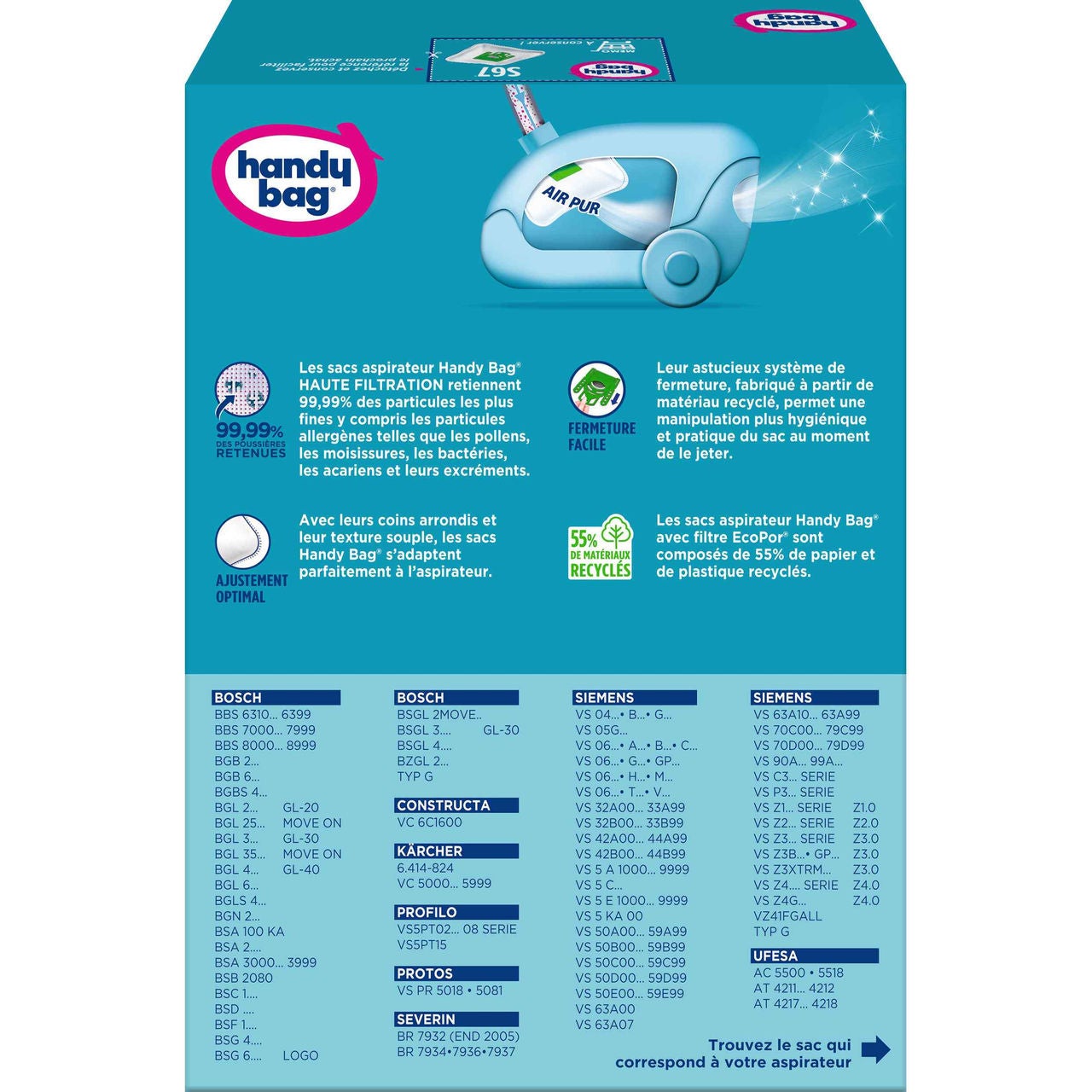 Nos sacs aspirateur Handy Bag® Haute Filtration vous garantissent une puissance d'aspiration maximale, et retiennent 99,99 % des particules de poussières les plus fines.