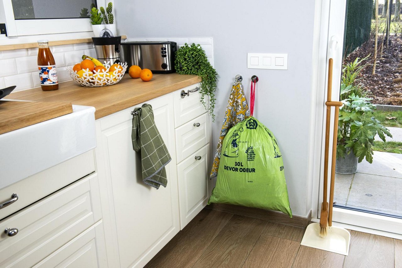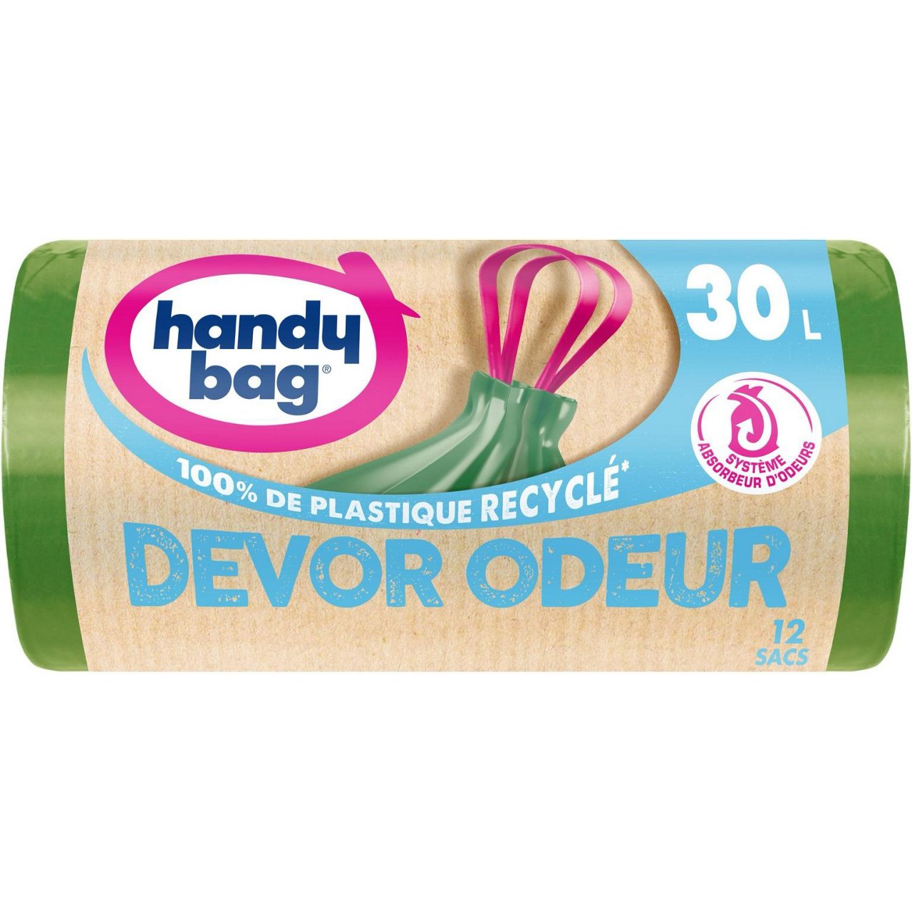 Nos sacs à poignées coulissantes Dévor Odeur sont dotés d'un système absorbeur d’odeurs qui aide à réduire les mauvaises odeurs, accompagné d’un léger parfum citronné. Ils sont ultra-résistants grâce au film triple épaisseur et leur fond anti-fuite offre une étanchéité maximale. Dotés de poignées coulissantes, les sacs sont faciles à fermer et à transporter. Ils sont composés à 100% de plastique recyclé*, et toujours aussi résistants !